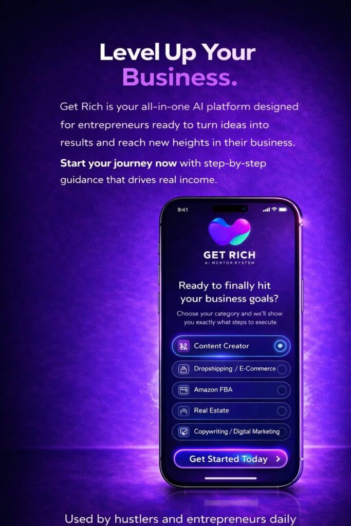 Whether it’s hitting a monthly income target, building your business, improving health, or leveling up mentally — The Get Rich App keeps you aligned, accountable, and locked in.
